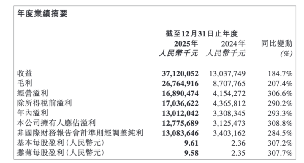 3月25日,泡泡玛特国际集团(泡泡玛特,09992.HK)发布2025年财报。2025年,泡泡玛特营收371.2亿元,同比增长184.7%,经调整净利润130.8亿元,同比增长284.5%,拟派末期股息每股2.3817元。