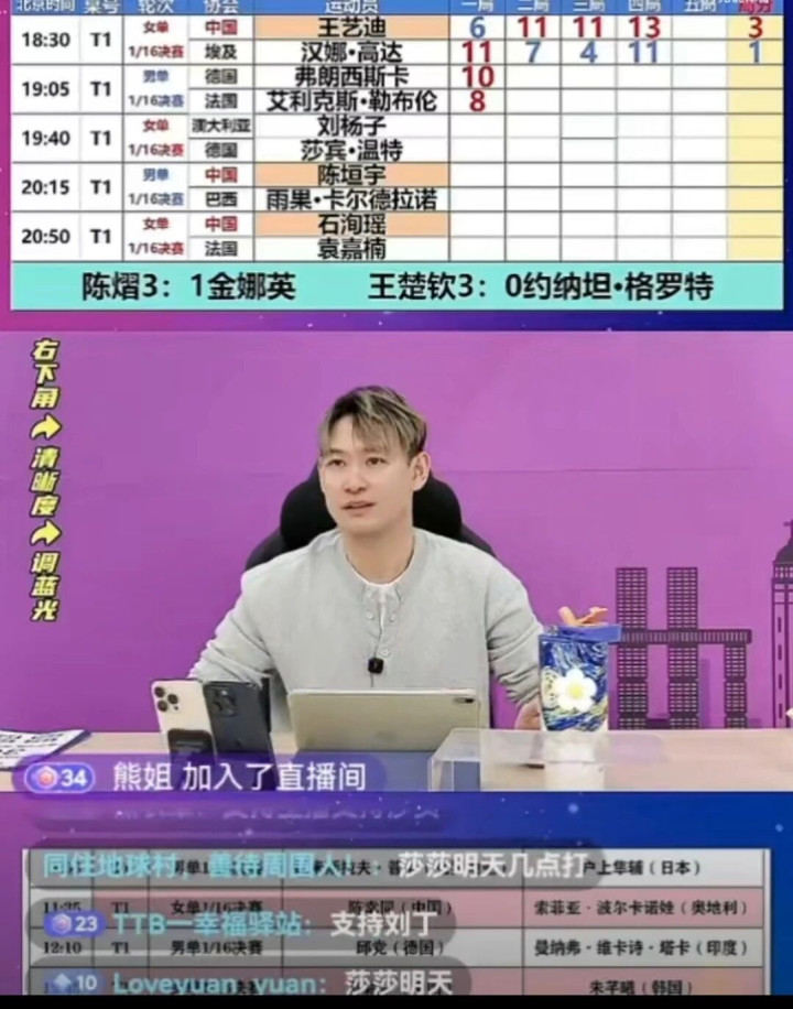 在首轮比赛中,除了国乒选手的比赛,还有几场比赛也很受球迷关注,比如德国选手弗朗西斯卡对阵法国选手艾利克斯.勒布伦的比赛。