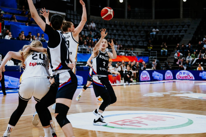 在最晚结束的一场D组焦点战中,韩国女篮与德国女篮的交锋呈现出一边倒的态势。从比赛一开始,比赛节奏就被身体优势明显的德国队牢牢掌控。虽然德国队的进攻谈不上行云流水,甚至略显生涩,但她们构筑的防守壁垒却让韩国队束手无策。韩国女篮赖以生存的看家本领是精准的外线投篮和快速的攻防转换,但此役面对欧洲球队的高强度对抗,她们的外线投射完全失准。